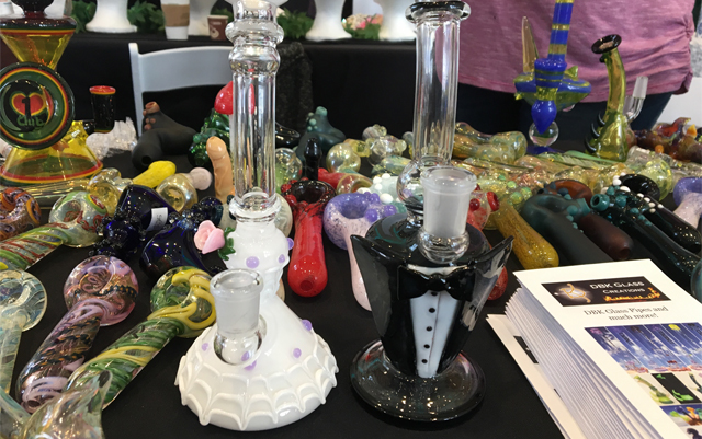 Smoke-able art from My Bud Vase, placed on tables gives guests a pretty and discreet smoking vessel made of antique vases.