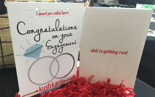 Kushkards show off their 420-friendly stationary with wedding invites, congratulations cards, table seating number cards, and save-the-dates. All cards have an ‘insert pre-rolled here’ for senders to add the cannabis (bought separately) to the card.