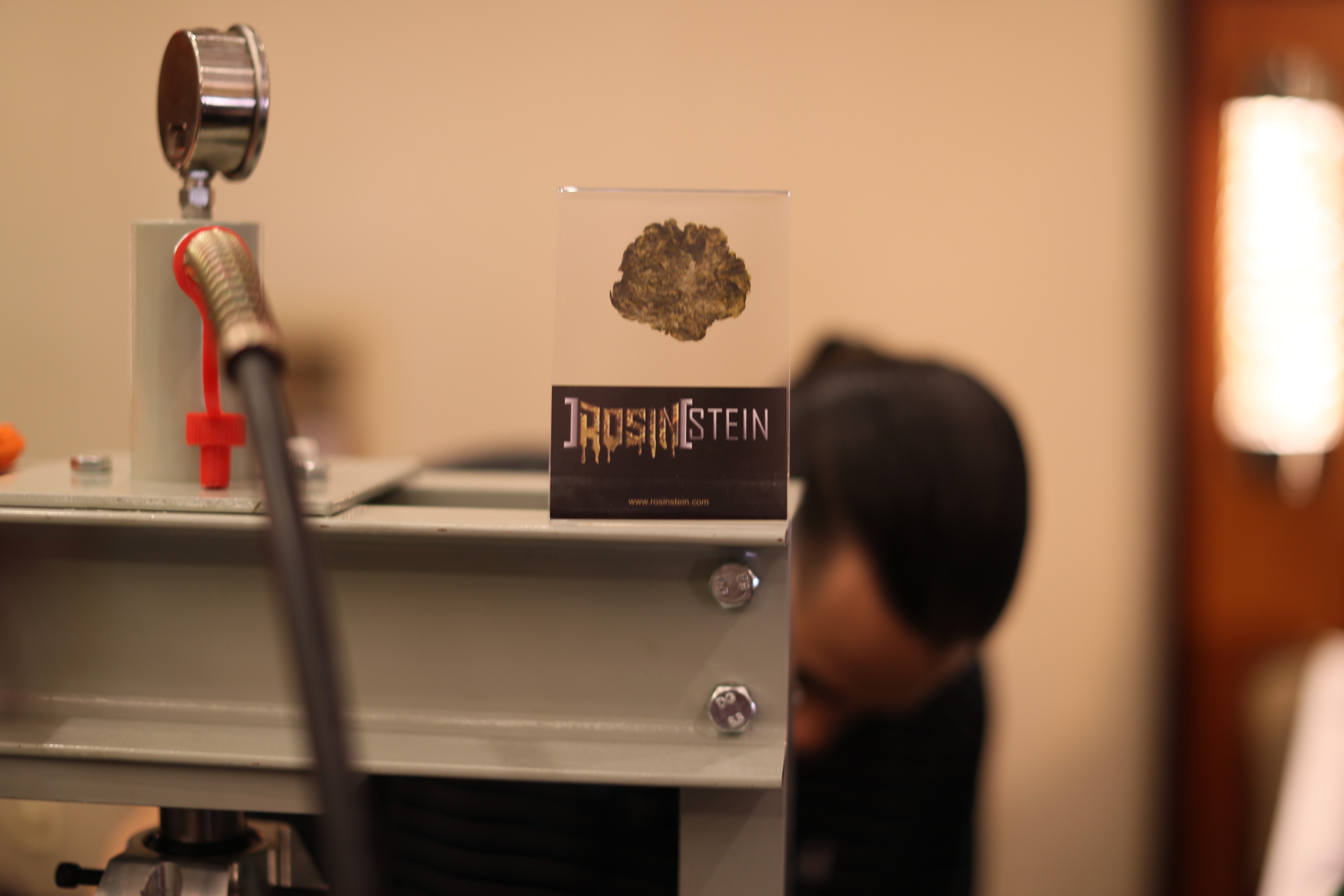 The RosinStein rosin press warms up to extract the essential oil out of the cannabis plant. The man behind the press is Cesar Salas, he began building his own machine as a gentler way to consume his medicine. A community-oriented operation, Salas presses flower for community members and is most happy to offer his services to veterans free of charge.