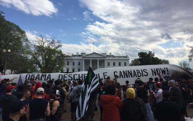 DCMJ, a community pro-pot advocacy group in Washington D.C., organized the April 2 smoke-out. They encouraged protesters to smoke, vape, and eat the herb in front of 1600 Pennsylvania Avenue to get the President’s attention.
