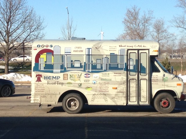 The hemp van visits then-presidential hopeful Martin O’Malley’s campaign stop in Iowa during the height of the 2016 presidential elections in February, 2016. O’Malley took this photo with a hemp flag and the hemp tour team.