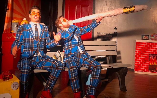In New York City, where cannabis is still marginally medically accessible and not yet legal recreationally, it’s still burning it up in the comedy scene. Artie Brennan and Anthony Giordano are the co-creators/writers of the variety game show, Super Crazy Funtime. The fantastic funhouse show is a TimeOut NY Critics Pick, and it’s last season was sponsored by weed. There were filmed commercials for weed, some of which went on to win small festivals, such as a leafy hype-man named “High Tide”, and a giant fake joint that they would hit on stage during the show.