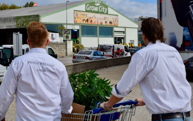 The result was a surreal trek back to the trade show with the Dutch Passion guys pushing along their cart full of cannabis plants.