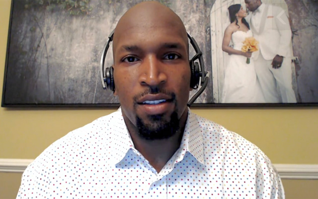 Screenshot of the live streaming Green Flower Media interview with Eugene Monroe