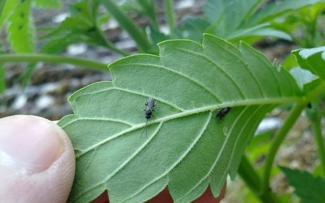 Over-watering creates the optimal, always moist conditions for serious infestations of Fungus Gnats to take hold, so don’t love your Cannabis to death. Let the top half inch or so of soil dry out between waterings and if possible water from the bottom. Consider applying a barrier layer of diatomaceous earth to the soil surface. The infinitesimal shards of fossil diatom shells/skeletons are deadly sharp to Fungus Gnat larvae. A special form of Bt, similar to but distinct from what you’d employ against caterpillars is found in mosquito dunk style products; it is the Bacillus thuringiensis subspecies israelensis (Bti) and can be found in merchandise such as Gnatrol . I’ve had some limited success controlling Fungus Gnat larvae with a dilute application of hydrogen peroxide. Outdoors, natural predators should keep this pest under control without much human intervention.