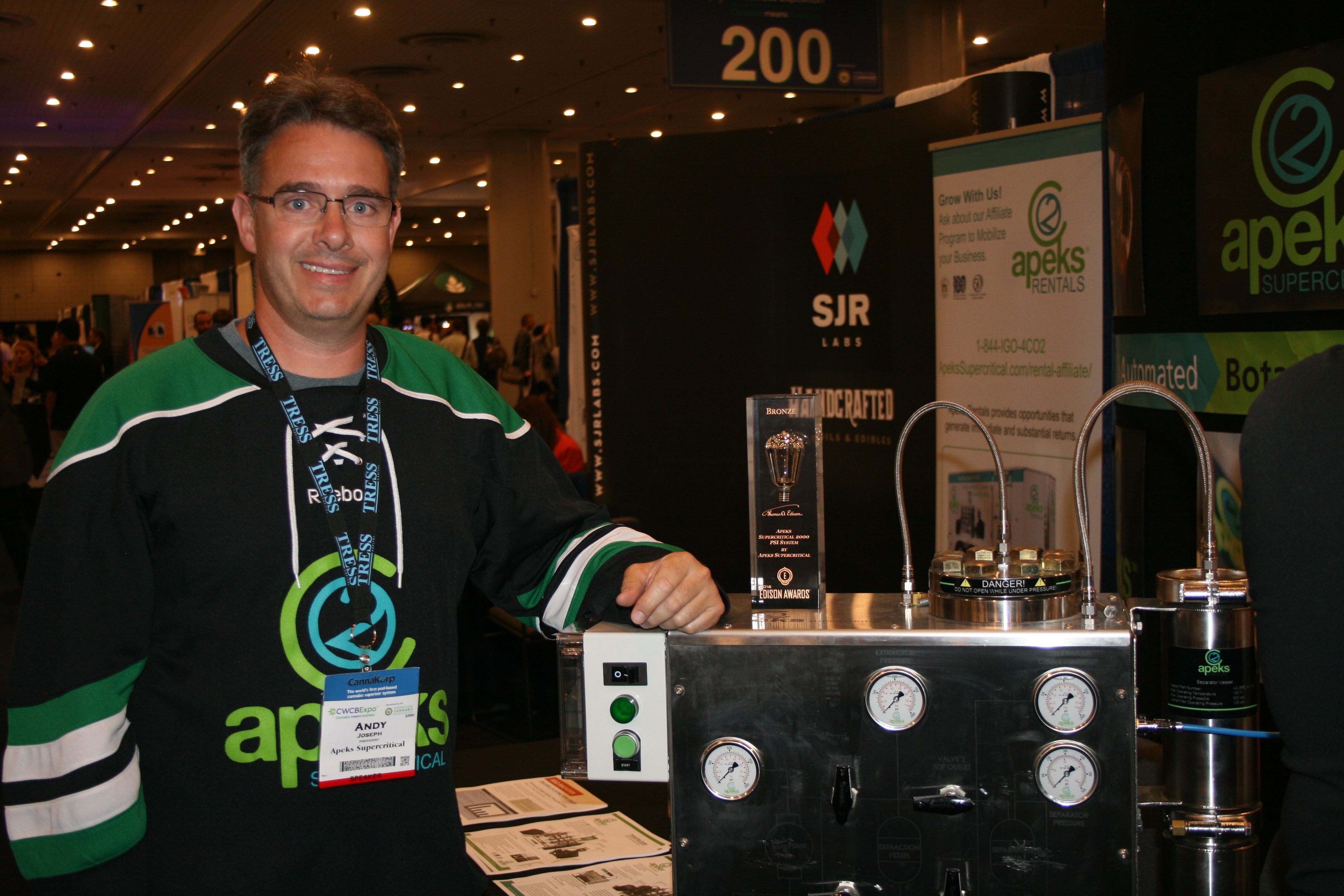 Andy Joseph, President of Apeks Supercritical, explains to attendees how his CO2 extraction machine works on the plant.