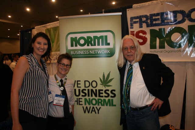 Keith Stroup (Right), founder of NORML, was a keynote speaker at the CWCBE conference. He stands beside (center) Jenn Pedini, NORML Business Manager and (Left) Danielle Keane, NORML Policy Director at the Cannabis World Congress Business Expo and Conference in New York City, on June 17, 2016.
