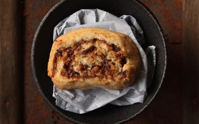 Finding a cookie format that had the perfect filling to cookie ratio in this date pinwheel took three different variations. Although the steps are somewhat more complicated than a traditional drop cookie, this hearty treat is satisfying as well as pretty. You can use the same dough, however, to make a number of variations. Date-filled raviolis were quite a hit one Wednesday night, but have a tendency to explode in the oven. Because the dough needs to chill for at least six hours, start a day ahead.