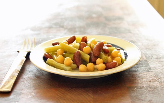 This three bean salad, of the distinctly not-magical variety, was a staple in my house growing up because the Illustrated Good Housekeeping Cookbook from which it is adapted calls for all canned beans – no trips to the grocery store required! It tastes better the longer the flavors are allowed to blend together in the fridge. Although I fondly remember many a Church potluck where this dish saved our family’s honor, it is much fresher, crunchier, and prettier if you take the trouble to cook the beans yourself instead of raiding the back of the pantry. Adaptations for both versions are provided.