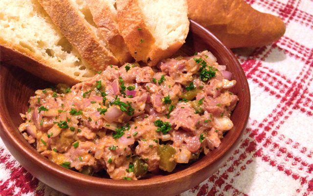 - 2 tbsps sweet gherkins, cut into pieces slightly smaller than the meat