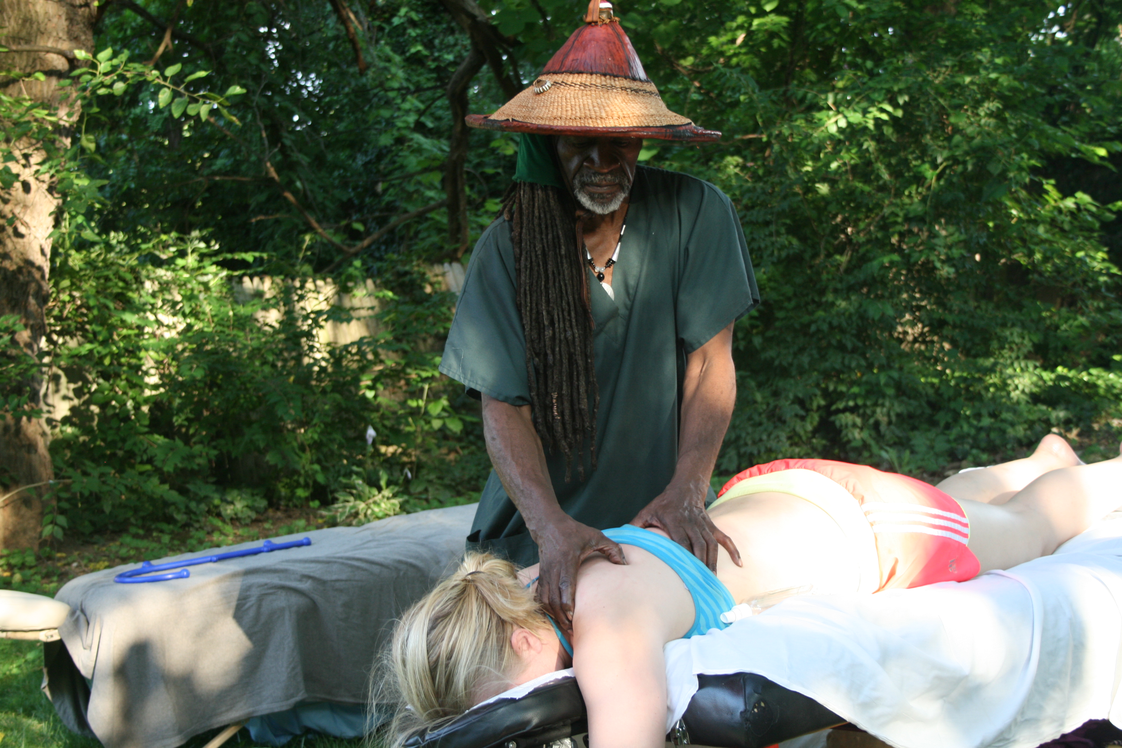 J’Huti Ta Seti massages a client in Washington DC. He’s been a massage practitioner for more than 20 years and founded the Healing Hands Massage Institute.